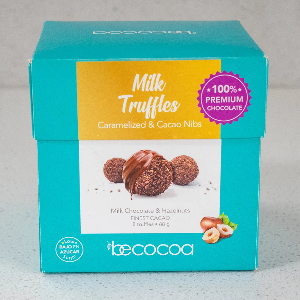 8 Caramelized Milk Chocolate Truffles – 60% Cacao Elegance Creamy, delicate, and irresistibly smooth. These low-sugar truffles are crafted with the finest cacao in the world, filled with caramelized milk chocolate and coated in rich dark chocolate with crunchy cacao nibs. Each piece is lovingly handcrafted by Ecuadorian women who master the art of chocolate, then wrapped in foil premium individual packaging to preserve flavor, freshness, and temperature.